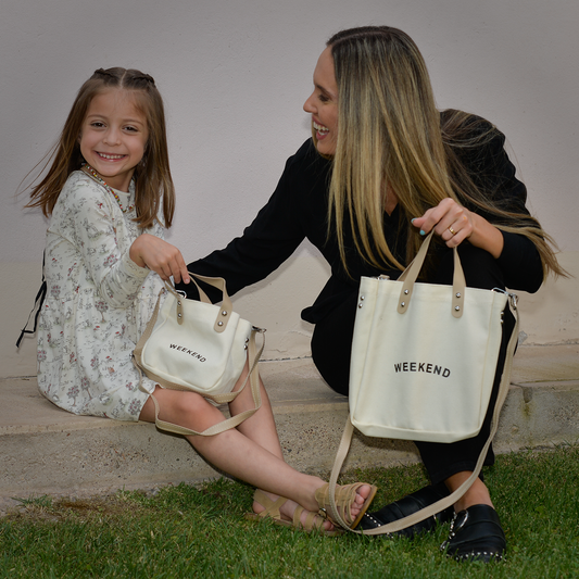 Set de 2 bolsos de lona madre e hija Tamaño mediano y pequeño | Bolso bandolera mujer | Beige