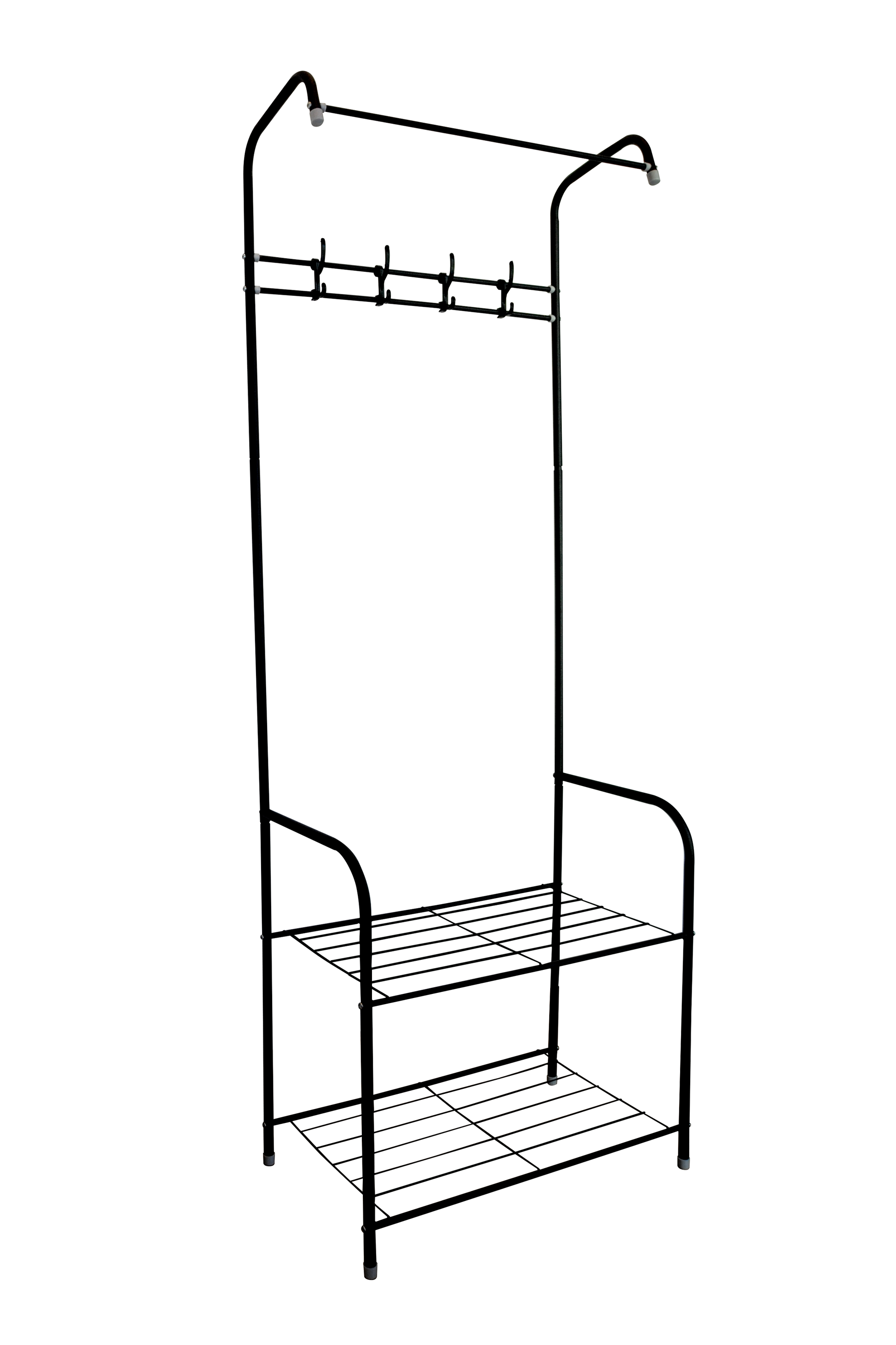 Nuestro nuevo diseño 3 en 1, ofrece un perchero armario con zapatero con piezas de sujeción a la pared. Es un perchero versátil con gran capacidad para bufandas y abrigos ligeros. Dispone de ganchos ideales para colgar objetos de diferentes tamaños como bolsos, sombreros y ropa, además de tener 2 estantes para almacenar tus zapatos. Perchero versátil, liviano y estable gracias a sus piezas de sujeción.